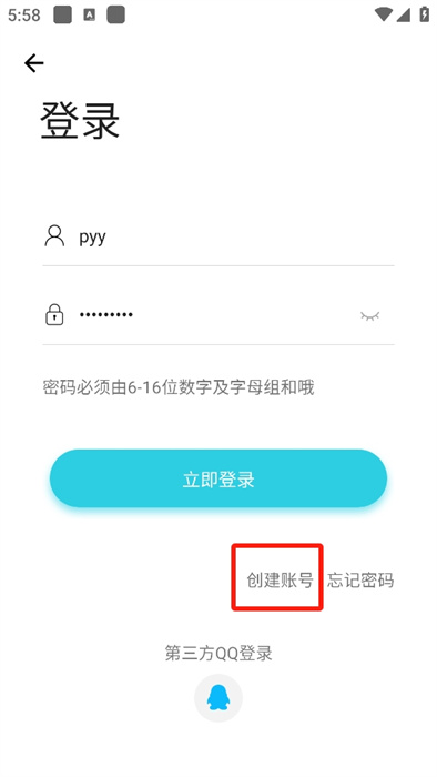3、随后在登录界面点击下方的【创建账号】去进行账号的注册;