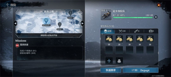 6、冰原探险加了生命条和背包,背包格子氪金扩大;