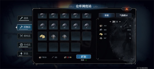 7、仓库加了格子限制,目前解锁格子的资源都可白嫖获得。