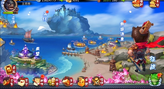 进入游戏内主城界面,国漫画风在场景的营造上,更加彰显纯粹的中国民间传统建筑风格特色。其体现在城门上的四角飞檐翘起,或扑朔欲飞,或矗立欲飘,加上空中风筝翻飞、远处群山层峦叠嶂、近处帆船乘风破浪、樱花起舞、潮涌浪翻,以及略带朦胧的层层尽染,使得整体画面的表现力广阔壮美,视觉感官上更加活泼、轻松,富有神秘感。国漫画风的运用,展示了中国历史悠久的传统文化和民族特色,给人耳目一新的视觉享受。