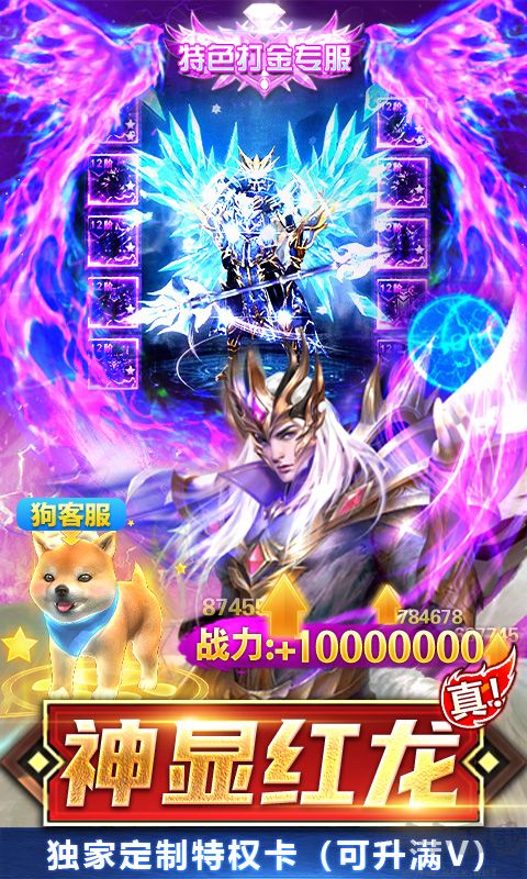 1、上线即领万元充值卡礼盒,188888钻石,8888888金币,专服大礼包,专属特权秒升满级VIP,达成任务送你mu神显,闯关送满级VIP,开服欧皇转盘天天抽真充