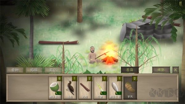 ②等材料收集到一定程度就可以做陷阱了,不会狩猎的萌新们可以先做椰子陷阱,大渔网,双弹绳套陷阱,不要超过8个哦,不然容易坏,放在左右两边的竹林就可以了。