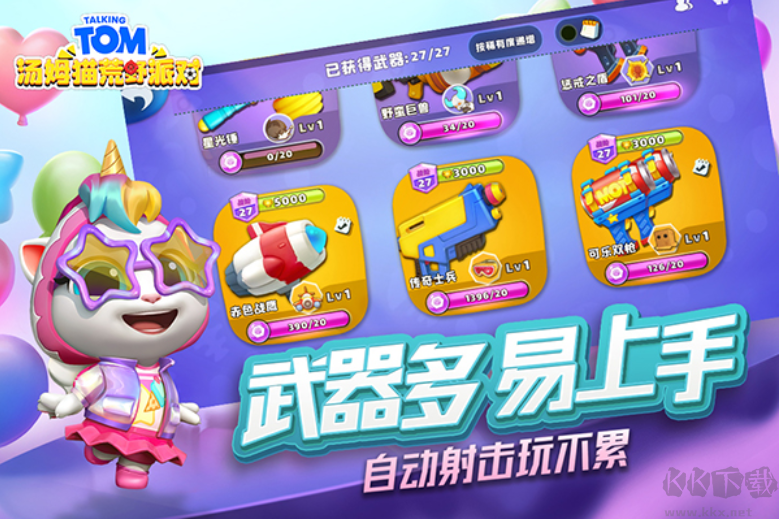 汤姆猫荒野派对内购版是一款非常好玩的枪战射击类游戏,游戏中采用了精美的卡通画面风格设计,加入了Q萌可爱的角色,以“会说话的汤姆猫家族”IP为角色背景精心制作,大量的角色都会等您获取,打造强大的阵容,轻松的冒险。