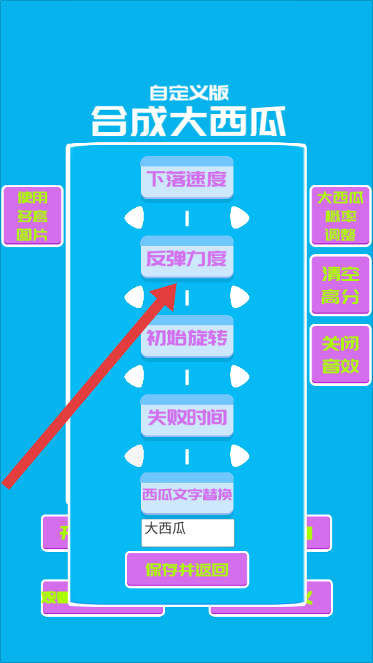 3、继续设置反弹力度参数等一系列参数,按需修改数值调整游戏反弹效果等,降低游戏难度。