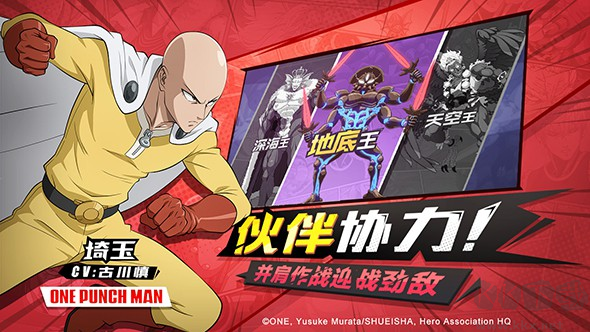 《一拳超人最强之男》是由北京天马时空网络技术有限公司制作发行的一款RPG手机回合制养成游戏,玩家可以收集漫画中的原创角色,游戏讲述了原本是一名普通人的光头埼玉,为了追寻自己想要成为英雄的梦想,通过加入英雄协会拼命锻炼和晋级,终于脱胎换骨获得了最强的力量,与众多英雄一起开始了对抗各种怪人以及灾难的生活。