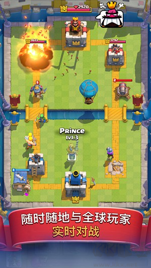 游戏的对战采用即时制,玩家需要在短时间内做出决策,利用卡牌的优势和对手的弱点来攻击和防守。对战过程中,玩家需要合理地分配圣水(游戏中的资源),并根据战场形势及时调整战术。同时,游戏中还有多种对战模式可供选择,如 1V1 对战、2V2 对战、挑战模式等,让玩家可以根据自己的喜好和实力来选择不同的挑战。