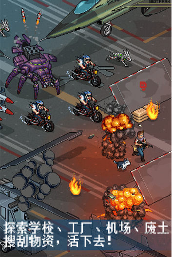 带上你的武器,开始闯荡像素构建的庞大废土世界。四处都游荡着丧失理智的怪物,它们在这片土地上肆意攻击和掠夺。而我们的目的很明确:横扫一切挡路的怪物,在这废土的世界,活下去。