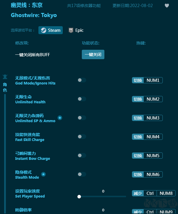 幽灵线东京修改器是一款热门游戏《幽灵线东京》的专用游戏辅助工具。高强度的游戏难度需要强力游戏辅助,本款辅助工具为玩家提供无敌模式,无限生命,无限灵力等十七项辅助功能,玩家可选择性开启,保留游戏体验同时降低游戏难度,让游戏更愉快!感兴趣的朋友不要错过,KK下载站推荐大家下载体验!