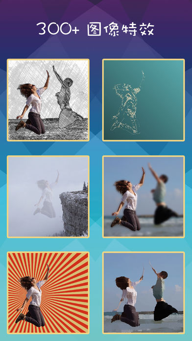 6、你可以创建投影,高光,描边,现代艺术,卡通,模糊,玻璃,铅笔,动画书,马赛克等各种特效