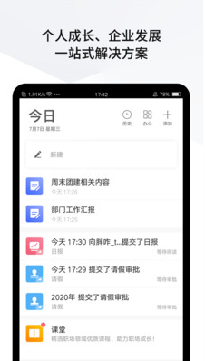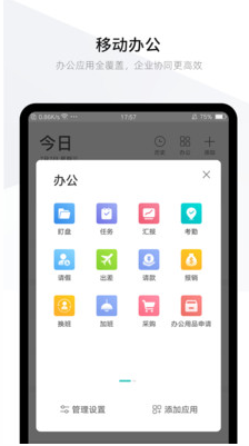 3、移动审批,请假、报销、出差、采购申请、物品领用……一键选择直属上级,省去复杂审批流程,随时随地审批。马上审批、让工作更高效轻松