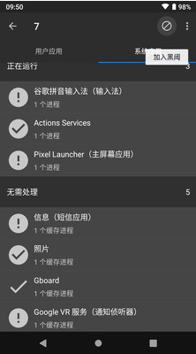 3、在待机超时,或者从多任务窗口中划掉时,黑阈就会立刻强行停止黑阈清单中的应用