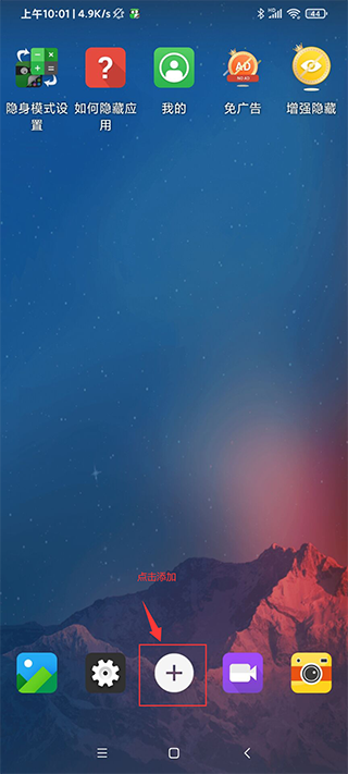 3、点击下方的“+”,可以隐藏或者双开应用;