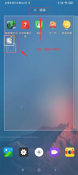 1、只需要轻轻一点,就可以将需要隐藏的应用快速隐藏,在手机桌面上不再显示。