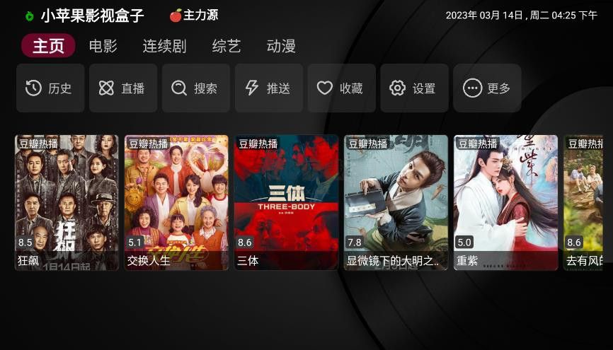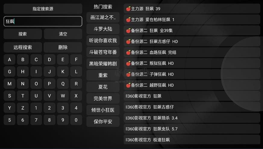 小苹果影视盒子界面按照电视使用习惯进行适配,操作简便。可输入文字首字英文进行搜索,右侧会显示对应的影视资源。点击前几个资源即可观看。除了影视资源,小苹果影视盒子还提供直播频道。内置100+数据源,每个数据源都是一整个网站,一键切换播放源,秒速缓冲,流畅观影。即使有偶尔播放不了的情况,也可一键快搜,快速切换播放源。
