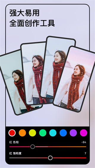 1.可调整色调、亮度、对比度和饱和度等参数,轻松优化图片效果。