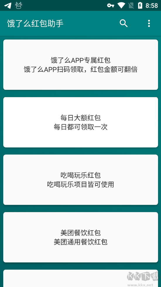 饿了么红包助手app是一款帮助我们领取饿了么红包的app,有餐饮红包、零售新鲜红包、饮食娱乐红包,大家只要每天来这里领取红包,那么购物就会省钱了,是我们常用的省钱神器,感兴趣的朋友不要错过,KK下载站推荐下载。