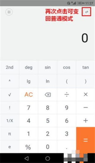 打开小米计算器的主界面以后,如果当前是普通模式,点击右上角的切换图标将它变为科学计算器模式。