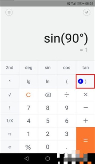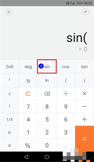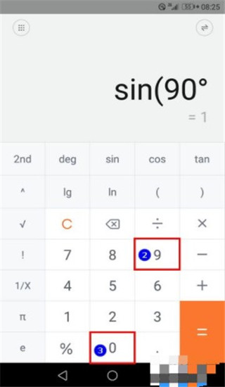 切换到科学计算器以后,如果我们想计算三角函数,操作步骤如下(以计算sin90度为例):