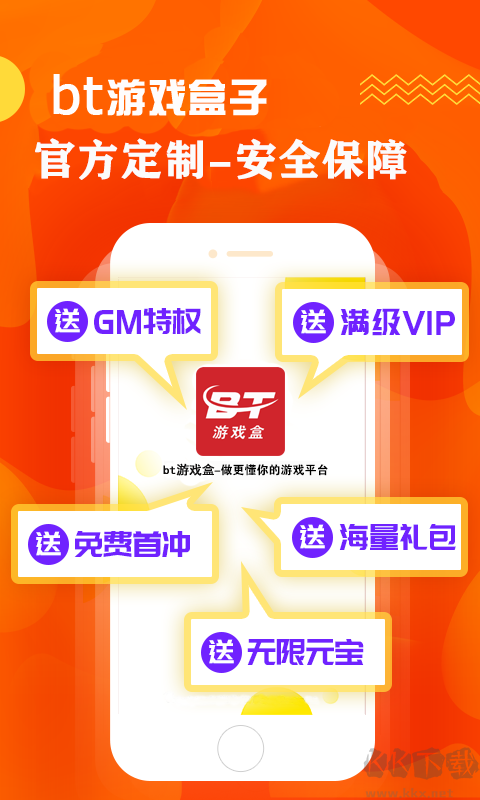 BT游戏盒子APP为玩家提供丰富的游戏福利,GM特权等,帮助玩家获得更爽快的游戏体验。BT游戏盒子送GM特权,免费VIP,无限元宝,免费首冲,免费礼包等等福利,上万款游戏任你选择,还能自由交易游戏账号,和更多玩家一起互动等等,让玩家的游戏生活更有趣!感兴趣的朋友不要错过,KK下载站推荐大家下载体验!