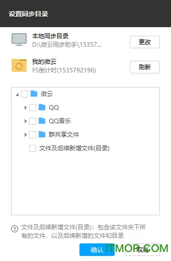 这时就会弹出设置同步目录的窗口,在这里点击“更改”按钮。这样以后设置的文件夹中有新文件的话,就会自动同步的微云保存。