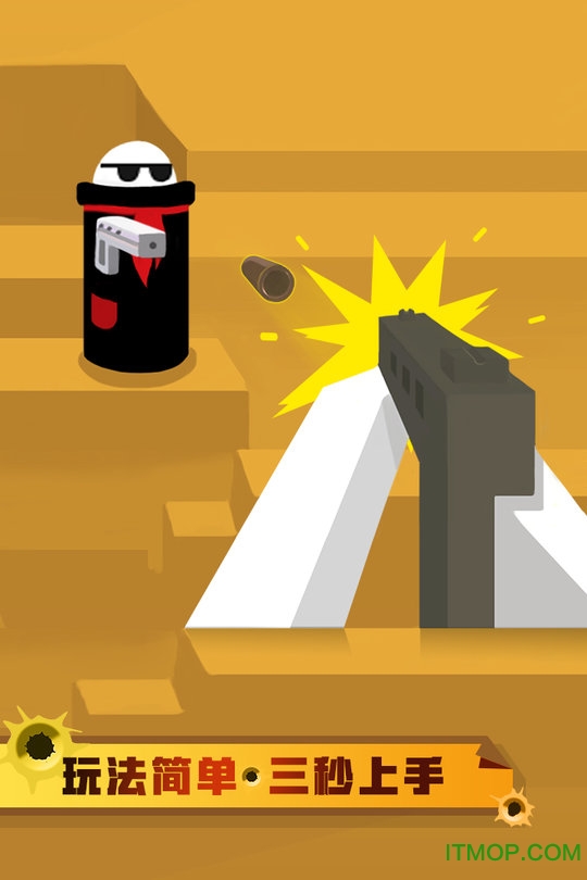 跳跳神**是一款休闲类游戏,又是一款简单又趣味性极强的小游戏,人物角色通过不断晃动的枪口对准敌人,将 其击中并可击毙敌人,没有命中的话则游戏失败,击毙敌人就可往上跳一阶,击中头部获得双倍积分,击中非头部位置获得普通积分 ,积分即为金币,金币可以用来兑换枪支跟角色.