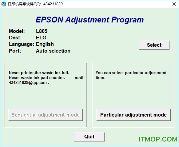 爱普生L805打印机清零软件是专为爱普生L805制作的清零软件,可以将计数器清零,完美的解决寿命到期的问题,在更换鼓粉后,也需要使用这个软件对打印机进行清零,否则打印机无法正常工作,是用户日常使用的必备软件。