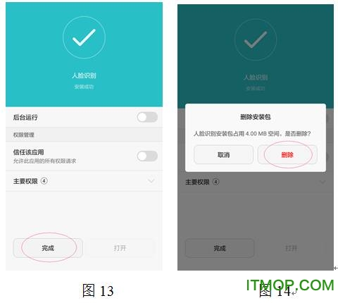 3.点击(图11)界面中“待遇资格认证”,对于首次安装程序,需要安装“人脸识别”软件(图12),点击“安装”。安装完成后,点击“完成”(图13),并将安装包删除(图14)。对于此前已安装过的,此步骤跳过。