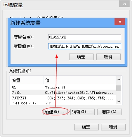 变量值:.%JAVA_HOME%lib;%JAVA_HOME%libtools.jar(注意最前面有一点)