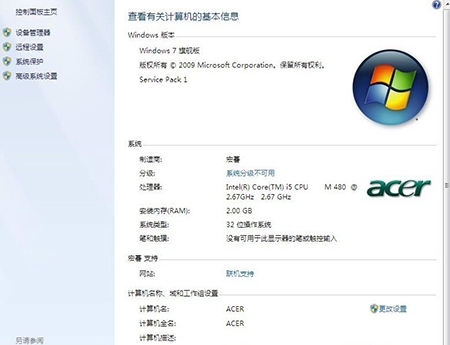 第二步:右键计算机属性,出现如下