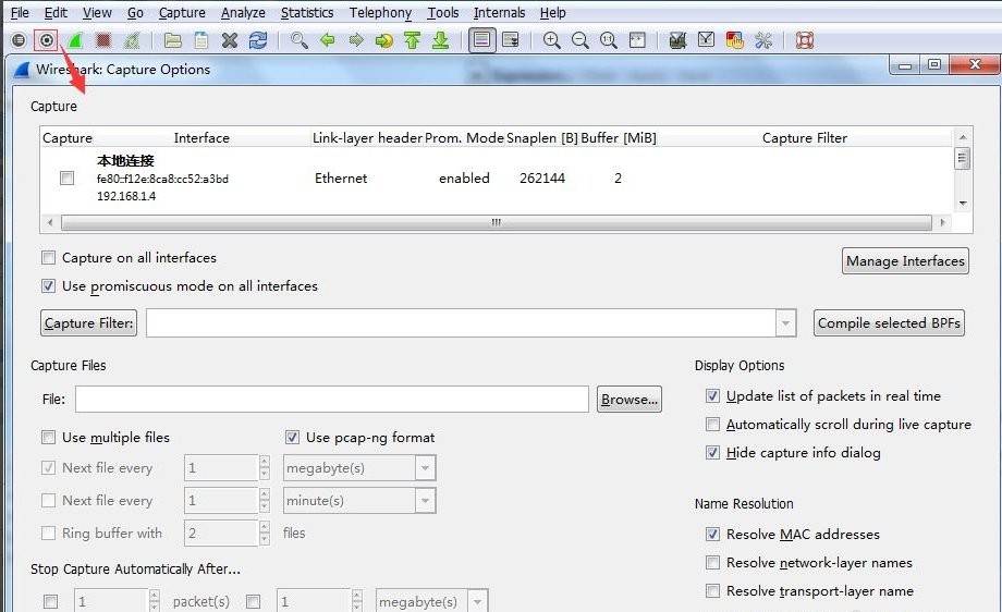 打开软件,点击抓取网络接口卡选择按钮,选择需要抓取的网卡接口。