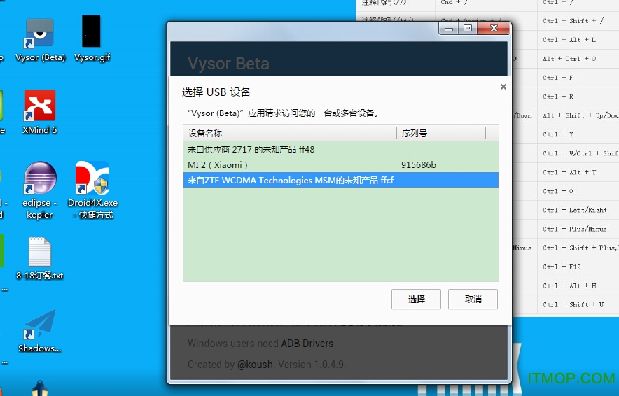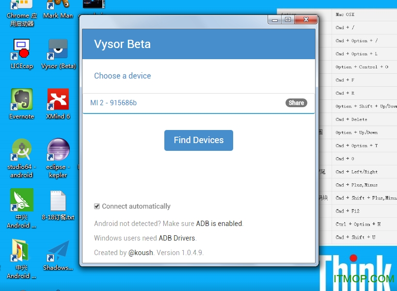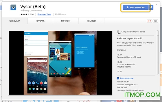 Vysor的设置非常简单,只需要在Chrome里安装Vysor,打开Android设备的 USB 调试模式,用USB线连接电脑与Android设备,就可以控制了。