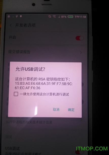 如果你手机提示下面对话框,果断ok,允许设备USB调试。如果不小心点了取消,就拔下来重插一下usb。