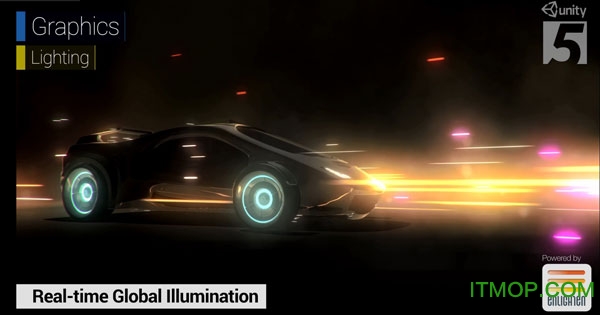 行业领先的实时全局光照技术 Enlighten 融入Unity 5,Unity 已与 Geomerics 建立合作关系。Enlighten
