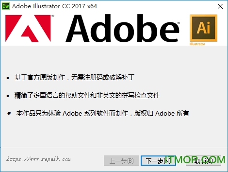 ai cc 2017精简版也就是adobe illustrator CC 2017的精简版本,是根据官方版本制作而成的,不需要注册码个破解补丁,一键安装就可以免费使用了,免去安装遇到的错误问题。