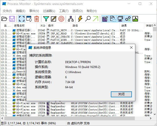 本机日志格式保存,在不同的 Process Monitor 实例中加载的所有数据