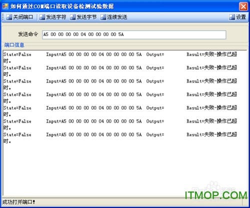 4、若打开成功,界面下方会有提示:COM OPENED,打开失败就检查串口有没有被占用。