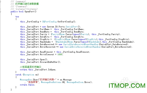 通过COM端口配置后,使用SerialPort类读取配置信息打开端口进行数据读、写操作。