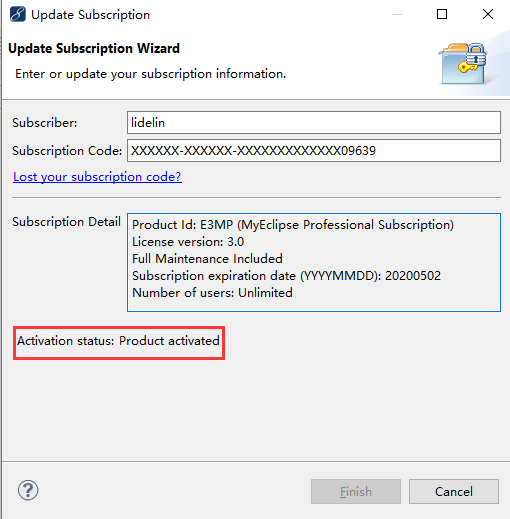 7、点菜单Tools-->SaveProperites,此时产品已激活.打开myeclipse 10菜单MyEclipse->Subscription Information ,如下显示表示破解成功!