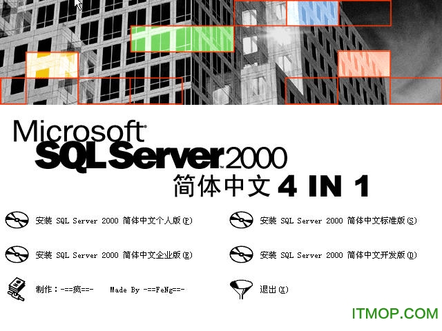 sql2000四合一是由微软打造的一款Microsoft sql server数据库开发软件,sql 2000 4in1包含了个人版、企业版、标准版、开发版以及sp4补丁,以方便朋友们更加方便的选择安装以及破解,轻松的使用这款软件的功能。有需要的朋友就来IT猫扑下载吧!