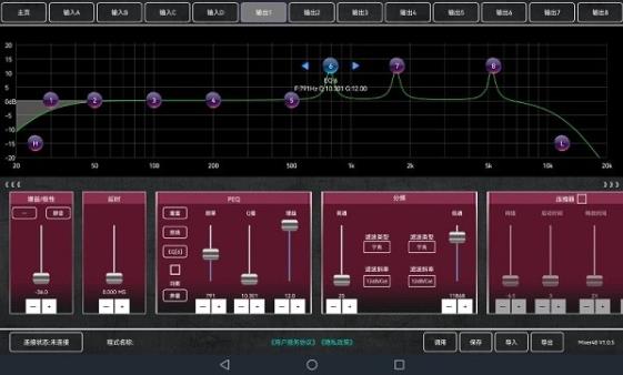 4、随时查询机械设备,操纵安全通道音量调节,输出路由器的配备,输入安全通道EQ,各种延迟情况等主要参数,用其他的情景方式读取,方便用户储存。