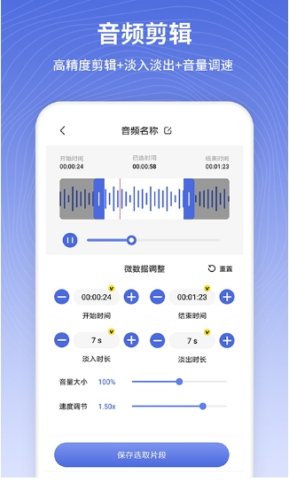 3. 有效帮助用户提取视频中的音频文件方便随时可以剪辑。去除杂音,是一款支持各种音频剪辑或音频合并的音频编辑大师,一键实现音频快慢放效果更带劲。