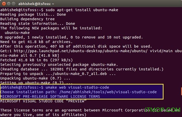 使用Ubuntu Make来安装Visual Studio Code。据了解,Ubuntu Make是以前Ubuntu开发者工具中心,作为一个命令行工具可以帮助用户快速安装各种开发工具、语言和IDE。同时,通过Ubuntu Make轻松安装Android Studio和其他IDE,类似eclipse。下面介绍如何使用Ubuntu Make安装VS Code。