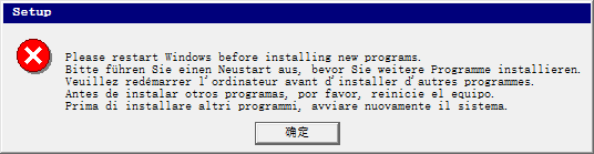 2、打开后得到安装程序,我们可以运行setup.exe程序,但是出现了报错问题。提示重新启动“Pleaserestart Windows before installing new programs…….”