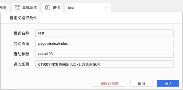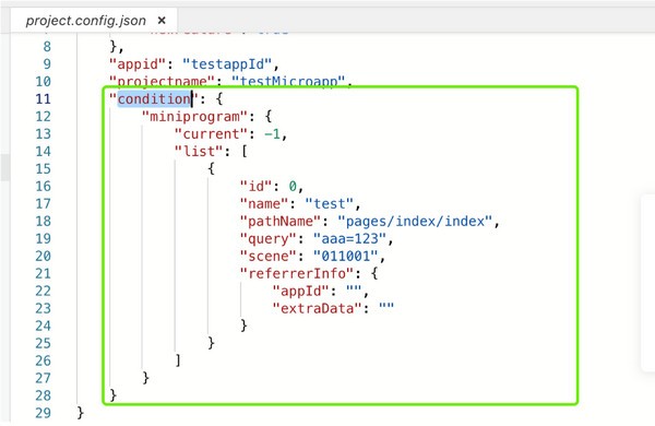 编译条件会读取 project.config.json 中的 condition 字段下的相关配置,方便导入编译条件。