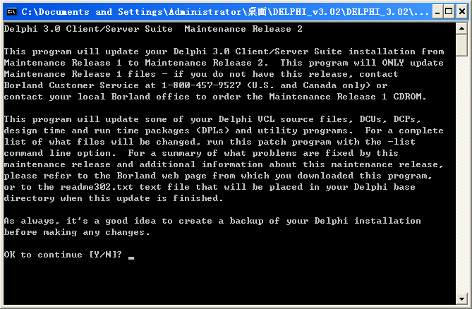 7、打开UPDATE3.02文件夹,运行里面的程序,选择Y,点击回车,可以将delphi升级到3.02版本!