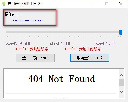 功能强大,操作简单,用户可以快速的对没有置顶功能的软件进行窗口置顶,同时还能调整软件的透明度,十分适合上班摸鱼或者在家躲开窗口使用并且软件十分小巧,不占用内存与运行速度