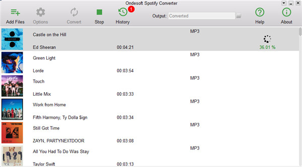 单击转换按钮开始将Spotify音乐转换为MP3或您选择的其他格式