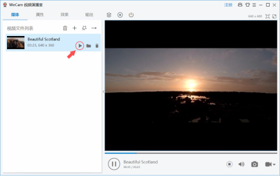 3、双击加入的视频文件或点击该视频上的播放按钮以播放该视频:
