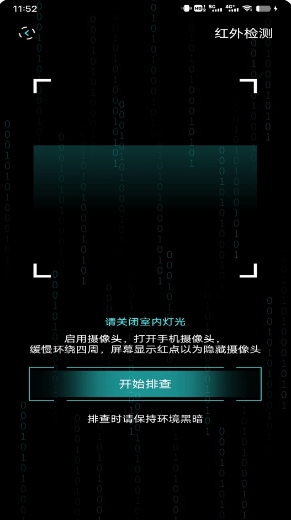 1.把室内所有的光灯光全部都关闭,然后启用手机摄像头就能直接检测了。