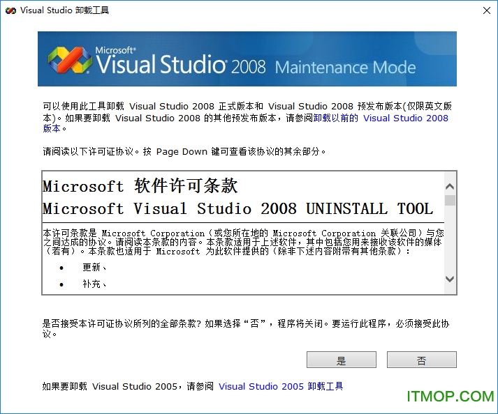 vs2008完全卸载工具是专用于卸载visual studio 2008的工具,这款软件本身插件多,如果手动删除,很容易导致卸载不彻底,并且费时又费力,如果用到vs2008完全卸载工具就容易得多了!有需要的朋友快来IT猫扑网下载吧!